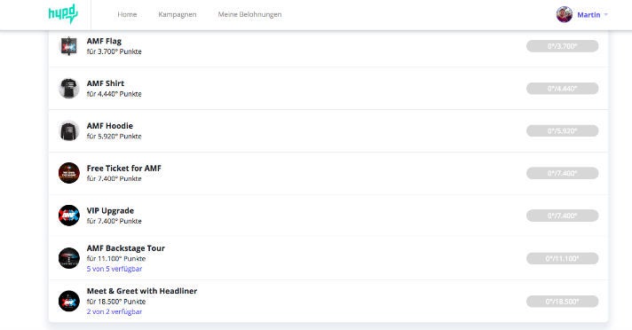 So habe das Q-Base-Festival für Leute, die besonders viele Tickets an andere verkauft haben, limitierte College-Lederjacken gestaltet. Eckelmann erzählt, dass Träger der Jacken auf dem Festival immer wieder angesprochen wurden, wie man an so eine Jacke kommt. Auch Schalke 04 habe bereits mit Hypd gearbeitet und ein signiertes Heimtrikot mit den Unterschriften aller Spieler an treue Fans verteilt. Verdienen können die sich solche Belohnung, indem sie für jedes verkaufte Ticket eine bestimmte Anzahl an Punkten sammeln, die sie dann für die gewünschte Belohnung „ausgeben“ können. Weitere Veranstalter, die bereits auf das Botschafter-Programm setzen, sind das Amsterdam Music Festival, das New Horizons Festival oder das Bootshaus in Köln.