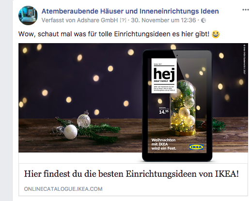 Eine Sponsored Post von Ikea auf einer der Facebook-Seiten von Markus David König.
