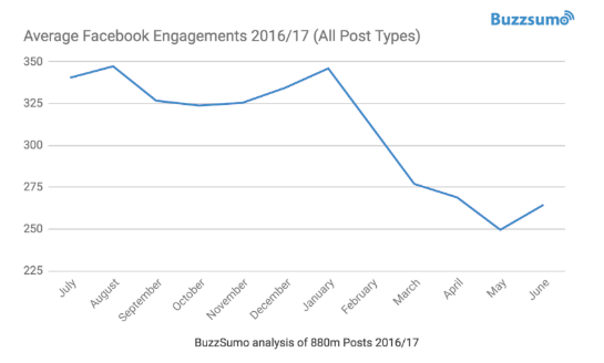 Durchschnittliches Engagement von 880 Millionen untersuchten Facebook-Posts. (Quelle: Buzzsumo)