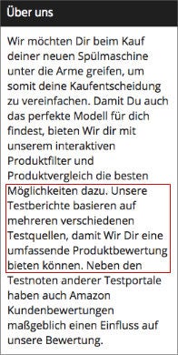 Dieser Hinweis war auf spuelmaschinen-tests.de zu finden und ließ darauf schließen, dass der Seitenbetreiber nicht selbst testete (bearbeiteter Screenshot, Quelle: Wayback Machine)