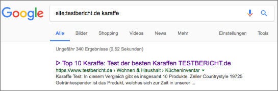 Ein Beispiel eines Suchergebnisses bei Google für Testbericht.de (Screenshot am 13. Januar 2017 aufgenommen)