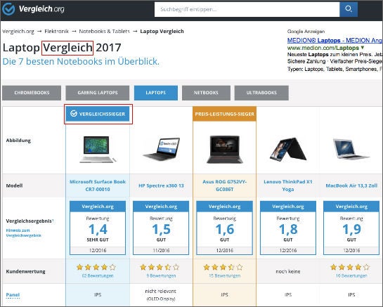 Nicht nur in den Google-Suchergebnissen, sondern auch auf der Seite selbst erwecken die Betreiber von Testbericht.de nach Empfinden von Mecan den Eindruck, Produkte selbst nach deren Qualität zu ranken. „Da steht dann auf der Seite ‚Test & Vergleich 2017’, über einer Liste von Produkten, die mit Zahlen versehen sind – das ist für Kunden keine ehrliche Darstellung.“