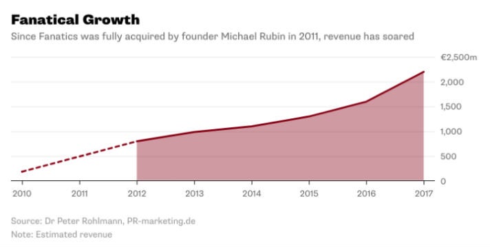 Die Umsatz-Entwicklung von Fanatics