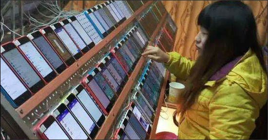 Dass App-Bewertungen gefaket werden, um die entsprechenden Anwendungen zu pushen und mehr Downloads zu generieren, dürfte niemanden mehr überraschen. Doch ein Bild, das möglicherweise aus einem chinesischen Sweatshop stammt, dürfte selbst vielen Entwicklern die Augen dafür öffnen, in welchem Umfang und wie systematisch diese Praxis mittlerweile offenbar betrieben wird. Wie Online Marketing Rockstars herausgefunden hat, bieten auch deutsche Mobile-Marketing-Agenturen öffentlich den Kauf von Bewertungen an.