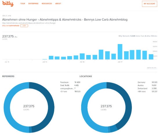 Mehr als 237.000 Mal wurde der Link in der Facebook-Gruppenbeschreibung bislang angeklickt (Quelle: Bitly