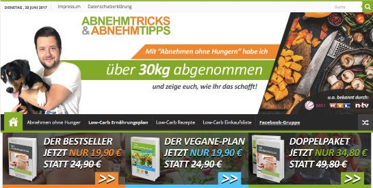 Offenbar hat diese Maßnahme einen beträchtlichen Teil dazu beigetragen, dass Oltmanns Low-Carb-Community die größte deutschsprachige Facebook-Gruppe ist. Neben der geschlossenen Gruppe dürfte die mittlerweile eingerichtete Facebook-Seite „Abnehmtricks und Abnehmtipps – Low Carb Rezepte“ für viele User der erste Kontaktpunkt mit Oltmanns Produkten sein. Auf dieser postet Oltmann täglich mehrfach Links zu Low-Carb-Rezepten auf seiner Website sowie mehr oder minder humorvolle Visual Statements zum Thema Abnehmen. Rund 290.000 Fans hat die Seite auf diese Weise bislang gewonnen. Oltmanns Abnehm-Website verzeichnet Schätzungen von SimilarWeb zufolge monatlich rund 109.000 Unique Visitor.