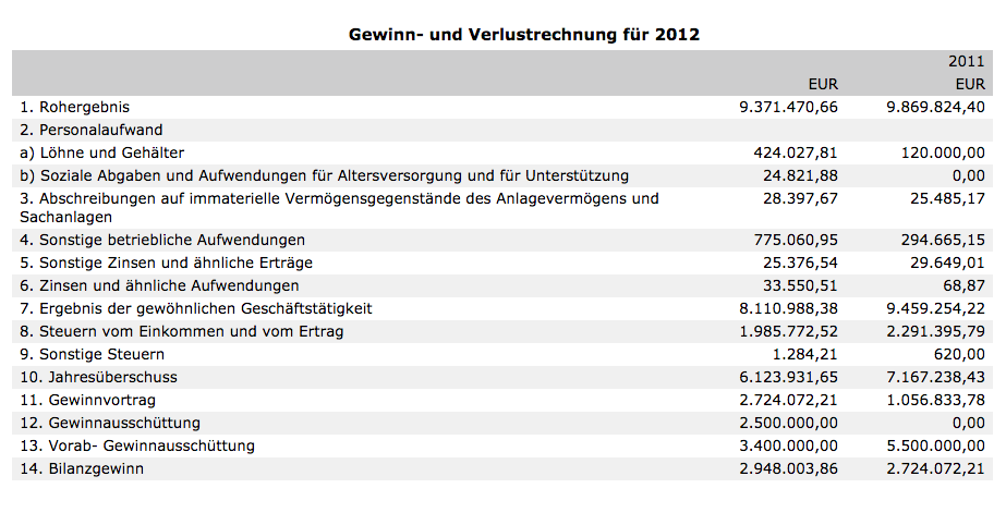 Gewinn- und Verlustrechnung von 2012 der Digital Assets GmbH (Screenshot: bundesanzeiger.de)