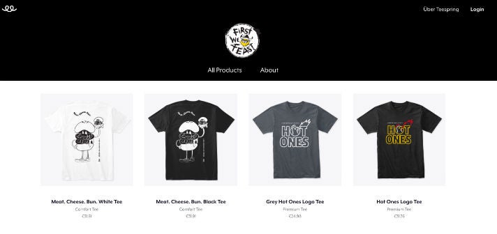 Ein paar Shirts aus dem Teespring-Shop von Hot Ones