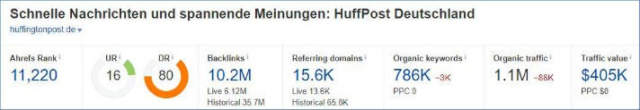 Die deutsche Huff Post hat viele eigene Backlinks und besitzt dementsprechend eine hohe Autorität als Domain