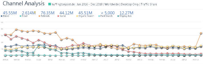 Die Entwicklung der Traffic-Quellen der deutschen Huff Post nach Schätzung von Similar Web