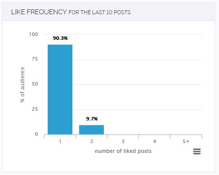 Influencer.db bewertet die Qualität der Reichweite eines Instagrammers anhand von mehreren Kriterien, u.a. der Frequenz, mit der die Instagram-Nutzer die Posts des Accounts liken. „Die meisten User – über 90 Prozent – liken den Content des Accounts ‚traveltomtom’ nur einmal. Das bedeutet, dass sie entweder zufällig auf sein Bild gestoßen sind und dieses geliked haben, also gar keine Follower sind, oder nicht besonders dedicated gegenüber seinem Content sind. Möglich wäre tatsächlich auch, dass dahinter ‚Like-Bots’ stecken – also gekaufte Likes.“ Bei Max Mustermann* liken laut Influencer.db 89 Prozent der Nutzer nur einen Post.