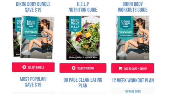 Itsines verkauft Fitness-Produkte auf der eigenen Webseite.