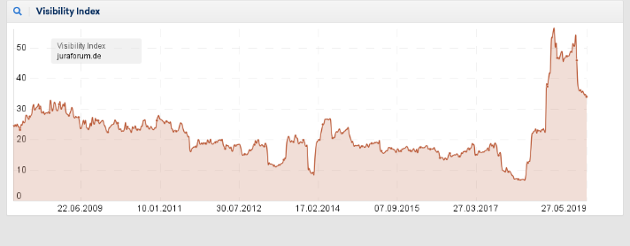Der Sichtbarkeitsindex von Juraforum.de seit 2009 (Quelle: Sistrix)