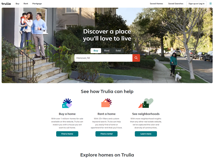 Über Trulia können Immobilien gekauft, vermietet oder verkauft werden.