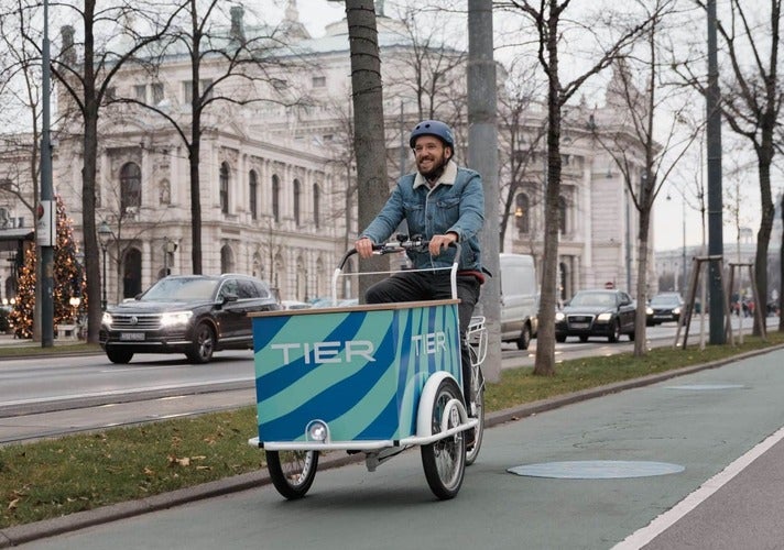 Die neuste Version des E-Scooters von Tier Mobility hat tauschbare Akkus, der Wechsel erfolgt durch Mitarbeiter, die mit Cargo-E-Bike oder Elektro-Vans unterwegs sind