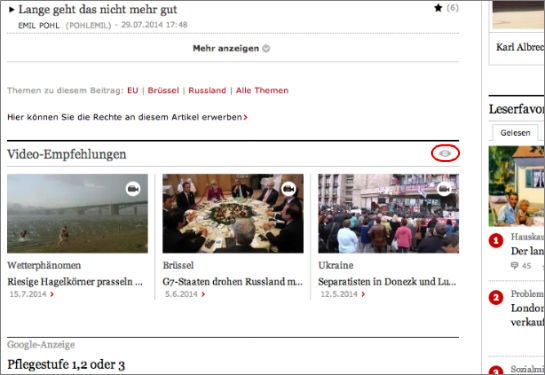 Video-Empfehlungen von Veeseo auf faz.net (Screenshot)