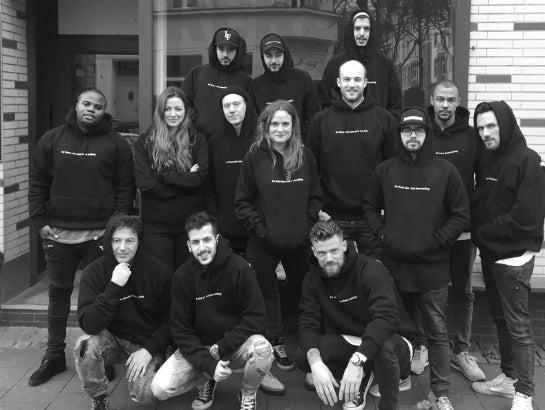Das Team von Live Fast Die Young. Gründer Lorenz Amend ist hockend in der ersten Reihe rechts, Commercial Director Karl Krumland steht direkt hinter ihm