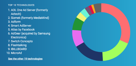 Der Marktanteil der Adserver auf den eine Million größten Webseiten der Welt (Anteile ohne Googles Doubleclick for Publishers / Quelle: Datanyze)