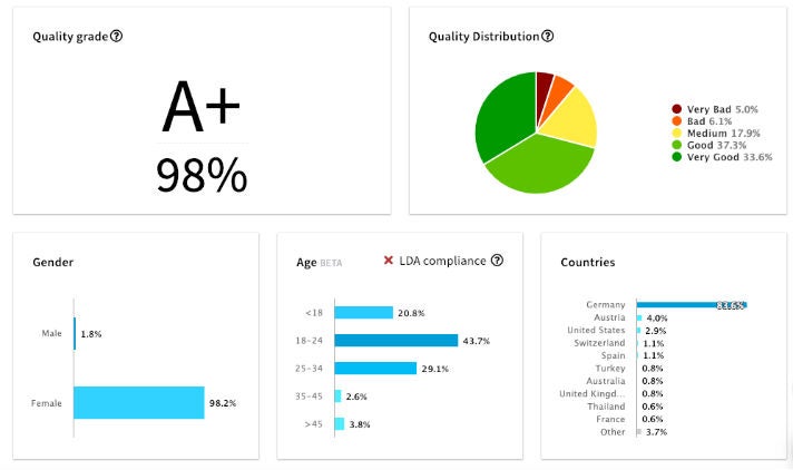 Die Kehrseite dieses Ansatzes? Oh April konnte zwar zum Start schnell knapp 75.000 Follower gewinnen, mittlerweile hat der Account aber „nur“ noch knapp 63.000 Follower. Nach dem ersten Aufmerksamkeits-Push findet also gerade eine Bereinigung der Follower statt, es bleiben nur die, die sich wirklich für die Brand interessieren. Laut dem Analyse-Tool InfluencerDB ist die Engagement-Rate (Verhältnis zwischen Likes und Kommentaren auf Posts zur Gesamtzahl der Follower) mit 6,6 Prozent für eine Brand aber ziemlich gut, und auch die Qualität der Follower ist laut InfluencerDB hervorragend.