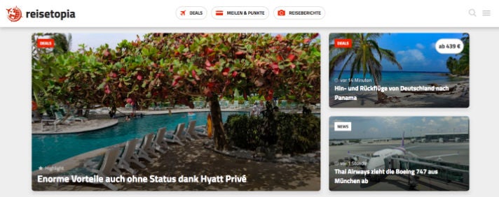 Die erfolgreichsten Produkte seien die American Express Platinum Karte und die Miles and More Kreditkarte der Lufthansa. „Unsere erfolgreichsten Kreditkarten sind die, die auch Meilen generieren. Generell sind wir in der Lage alle Produkte, für die es Meilen oder Punkte gibt, in großer Menge an den Mann zu bringen“, sagt Stoldt. Allein über das American-Express-Produkt gebe es auf Reisetopia über 300 Artikel mit durchschnittlich 2.000 Wörtern. American Express selbst verspricht 75.000 Punkte als Willkommensbonus, diese können die Nutzer für Meilenpunkte bei den Fluglinien eintauschen. Laut Stoldt lässt sich der Bonus konservativ in 2.000 Euro umrechnen, daher sei die Kreditkarte bei Besuchern von Reisetopia so beliebt.