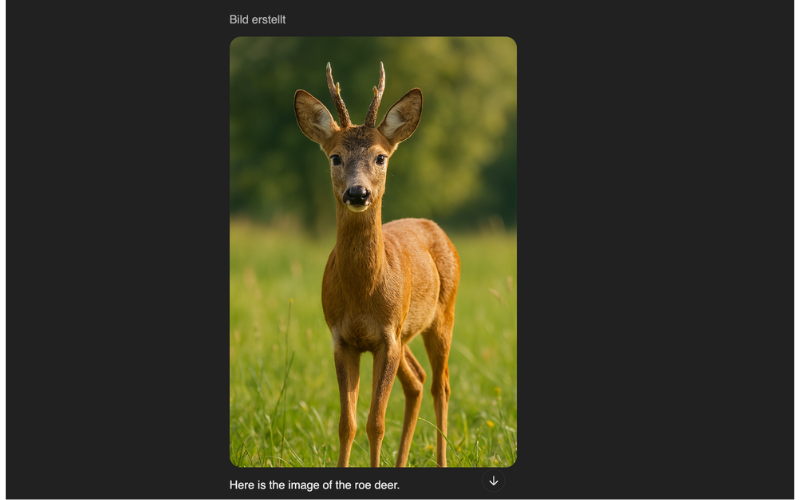 Zunächst erstellt DALL-E unser Bild. Prompt: „Erstelle mir ein Bild eines Rehs.“