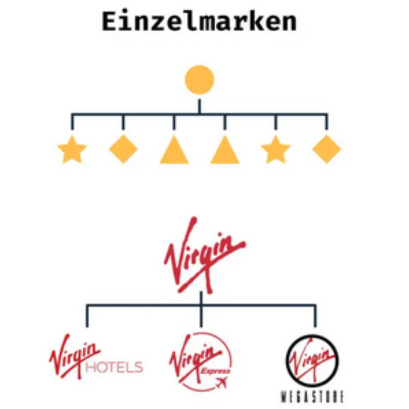 | Nachteile | Ein Skandal wirkt sich auf alle zugehörigen Marken negativ aus. | Die Produktetablierung und der Markenaufbau sind aufwendiger und teurer. |