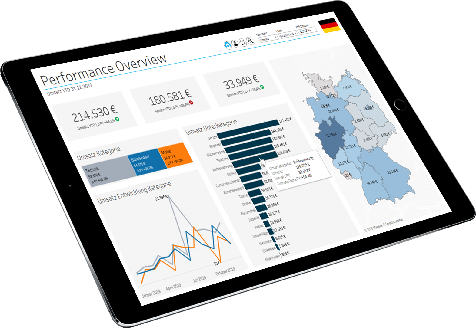 Ihr könnt schneller auf Einflüsse von außen reagieren und seid, dank Self-Service BI, unabhängig von anderen Unternehmensbereichen. Nicht zuletzt die skalierbaren Lizenzkosten und die Standardschnittstellen ermöglichen eine schnelle Integration. Die Möglichkeit das Reporting flexibel um Elemente der Data Science zu erweitern, eröffnet Euch zudem den Zugang zu datengestützten Handlungsempfehlungen und Entscheidungen.