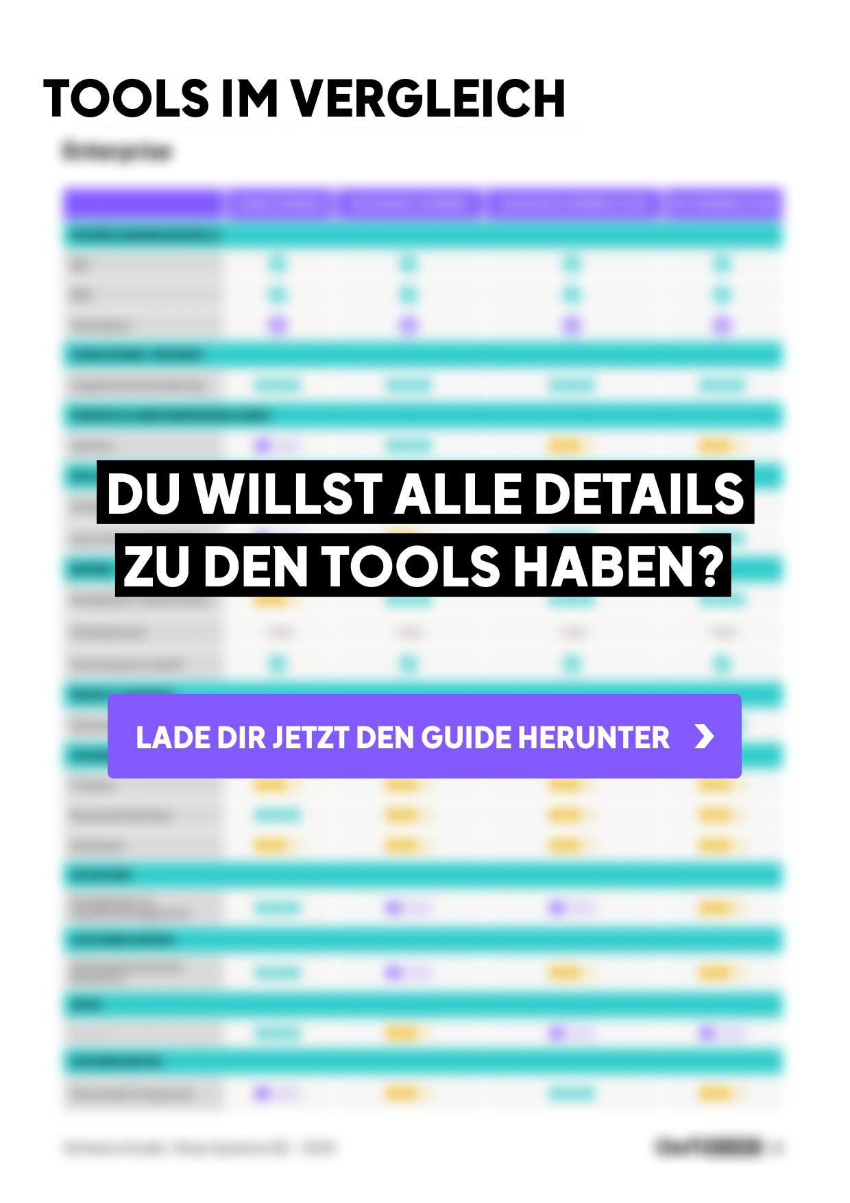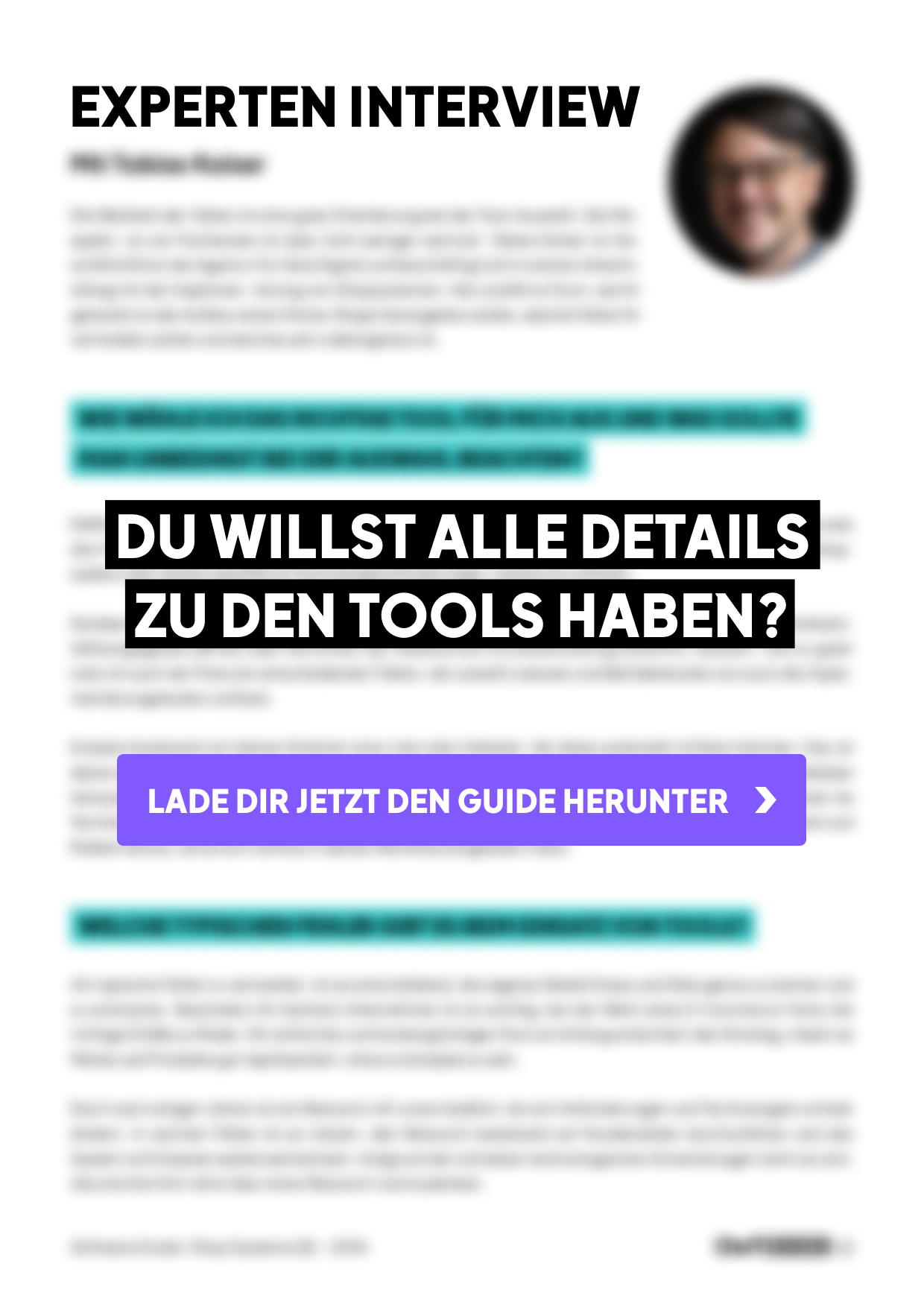 Als Entscheidungshilfe findest du in unserem kostenlosen Software Guide außerdem eine praktische Übersicht über alle Tools und Funktionen. Diese haben wir gemeinsam mit unseren Shop-Experten Tobias Kaiser von For Sale Digital und Dennis Kallerhoff von Evale entwickelt. Sie geben dir zudem weitere Einblicke in die Welt der Shopsysteme und hat hilfreiche Tipps für die Tool-Auswahl parat.