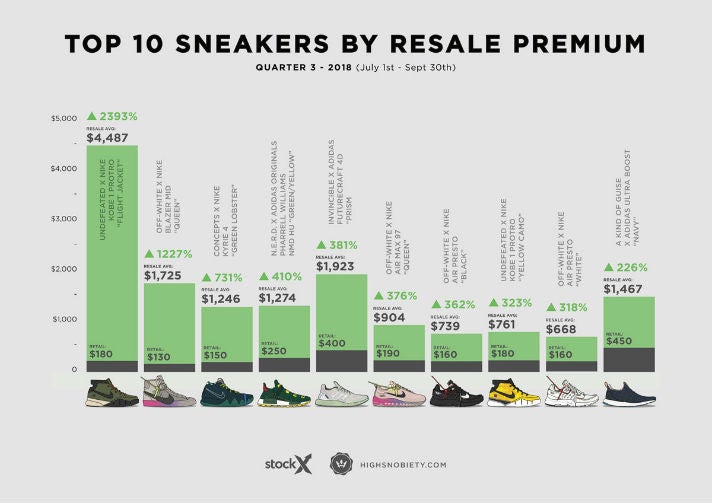 Die Sneaker mit der größten Preissteigerung in Q3/2018 (Quelle: Highsnobiety)