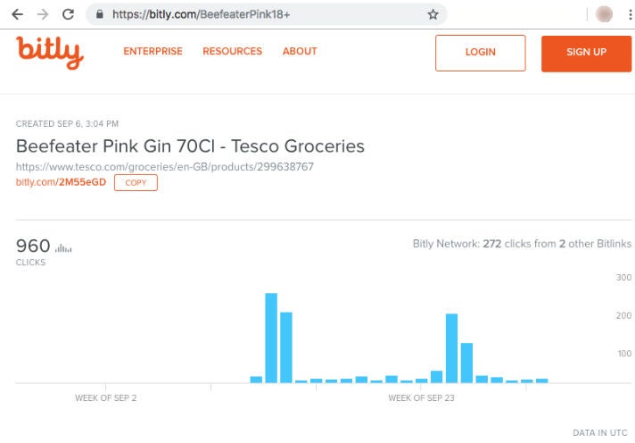 Klick-Statistiken eines Bitly-Links aus dem „Love Food“-Instagram-Profi
