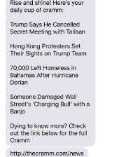 Wer auf der Seite von The Cramm landet, kann sich entweder für einen Newsletter oder ein SMS-Format anmelden (Quick Cramms). Dann gibt’s jeden Schultag eine Mail oder SMS ins Postfach, in der die wichtigsten Nachrichten des Tages von Seltzer zusammengefasst werden. „Ich wache jeden Tag um fünf Uhr morgens auf und verbringe eine Stunde mit dem Lesen der wichtigsten Nachrichten auf verschiedenen News-Seiten“, erzählt sie NPR. „Wenn ich einen Newsletter fertig geschrieben habe, gebe ich ihn an meine Eltern. Die lesen ihn und machen Anpassungen.“Wie der Name schon sagt, „stopft“ (im Englischen: to cram) Seltzer eine vielfältige Sammlung an Meldungen und Themen in ihren Newsletter. So landet am Montag, den 9. September der aufflammende Konflikt zwischen den USA und den Taliban als Hauptthema in der Mail. Dazu kommen Meldungen über Proteste in Hongkong, Pilotenstreiks, Hurrikane-Auswirkungen und Wahlen in Russland. Die Themen sind kurz gehalten und übersichtlich in Abschnitte mit passenden Überschriften aufgeteilt. „Ich schreibe The Cramm genau so, wie ich mit Freunden spreche. Und alles was ich schreibe, schreibe ich aus der Perspektive eines jungen Menschen“, sagt Seltzer. „Ich habe immer eine Top Story des Tages. Das ist nicht immer die Top Story jeder Nachrichtenseite, aber die wichtigste Geschichte in den Augen junger Menschen.“ Ihre Leser seien zwischen 13 und 30 Jahren alt und würden aus 32 Ländern kommen.