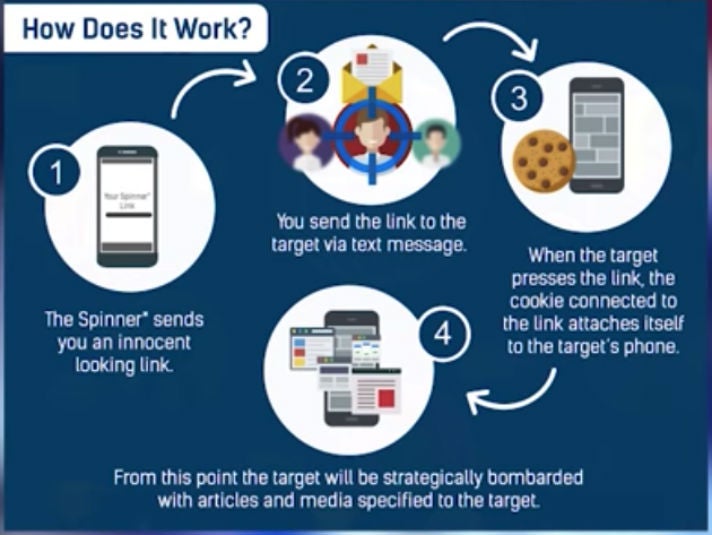 Vergessen wir mal die Häme. Kann das, was „The Spinner“ anbietet, rein technisch überhaupt funktionieren? Die Antwort ist simpel: Ja, kann es – und es ist ganz sicher kein Hexenwerk, sondern sehr normales Retargeting. Wenn das „Ziel“ den verschickten Link angeklickt hat und der Cookie so gesetzt wurde, landet die Person in der Zielgruppe der „Sex-Kampagne“. Laut der Website werden in der Folge für drei Monate 180 Mal Artikel ausgespielt. Das Ganze soll 29 US-Dollar kosten.