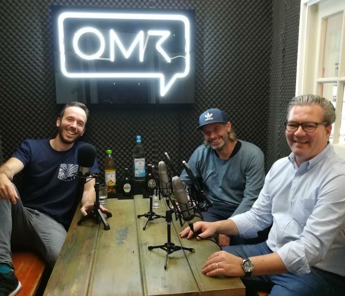 Marcus Stahl (rechts) und Patric Faßbender mit OMR-Gründer Philipp Westermeyer (links) in der OMR-Podcast-Kabine