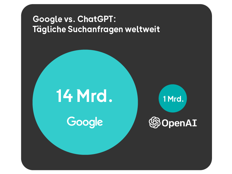 Gleichzeitig gewinnen KI-Chatbots wie ChatGPT, Perplexity, Claude oder Gemini an Bedeutung. Während Google täglich rund 14 Milliarden Suchanfragen verarbeitet, liegt ChatGPT als Marktführer bereits bei etwa einer Milliarde – mit starkem Wachstum. Zwischen März und August 2025 stieg die Zahl der wöchentlichen Nutzer*innen von 500 auf 700 Millionen. Zudem zeigen Umfragen, dass mehr als die Hälfte der Deutschen KI-Chatbots bereits in Kaufentscheidungen einbezieht.