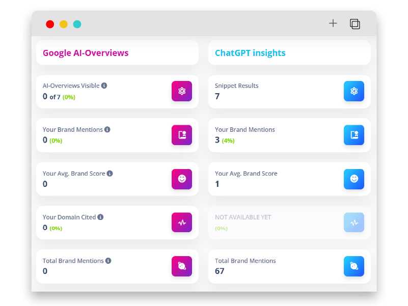 - Der AI Visibility Score misst die Markenpräsenz in KI-Antworten.