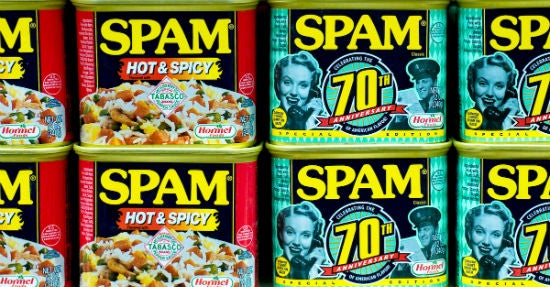 Als die Hormel Food Cooperation aus Minnesota 1937 das Dosenfleisch „Spam“ auf den Markt brachte, hat sicherlich keiner damit gerechnet, dass dieses Kunstwort (vermutlich eine Schöpfung aus „Spiced Ham“) ein paar Jahrzehnte später eine völlig andere Bedeutung erhält. Schließlich wurde extra ein Wettbewerb zur Namensgebung ins Leben gerufen. Der Gewinner erhielt damals immerhin 100 US-Dollar – und schrieb damit Geschichte. Das Frühstücksfleisch, bestehend aus etwa 95 Prozent gepökeltem Schweinefleisch, wurde zu einem weltweiten Erfolg und einem der amerikanischen Symbole der Kriegs- und Nachkriegszeit.