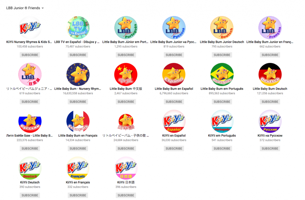 All 20 YouTube channels in the “Little Baby Bum” universe at a glance.