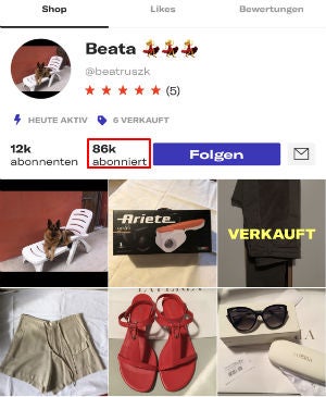 Growth tips in the Reddit Depop forum  have helped her amass followers, explains Lange. If you browse through the Depop subreddit, you’ll find a host of suggestions that people accustomed to the workings of social media platforms will recognize: like following as many people as possible. “I only follow users who seem to me as if they would buy something that I sell,” says Lange. How a corresponding Google search shows, there are bots on Depop, just like on Instagram, which automatically follow other users for merchants. They run between USD 15 per month and GBP 75 a year.