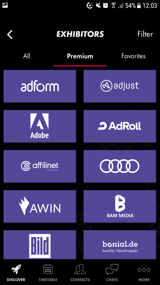 Our app also has everything you need to know about our exhibitors too. Just click “Exhibitors” to learn more. You can sort them by branch or by favorites.
